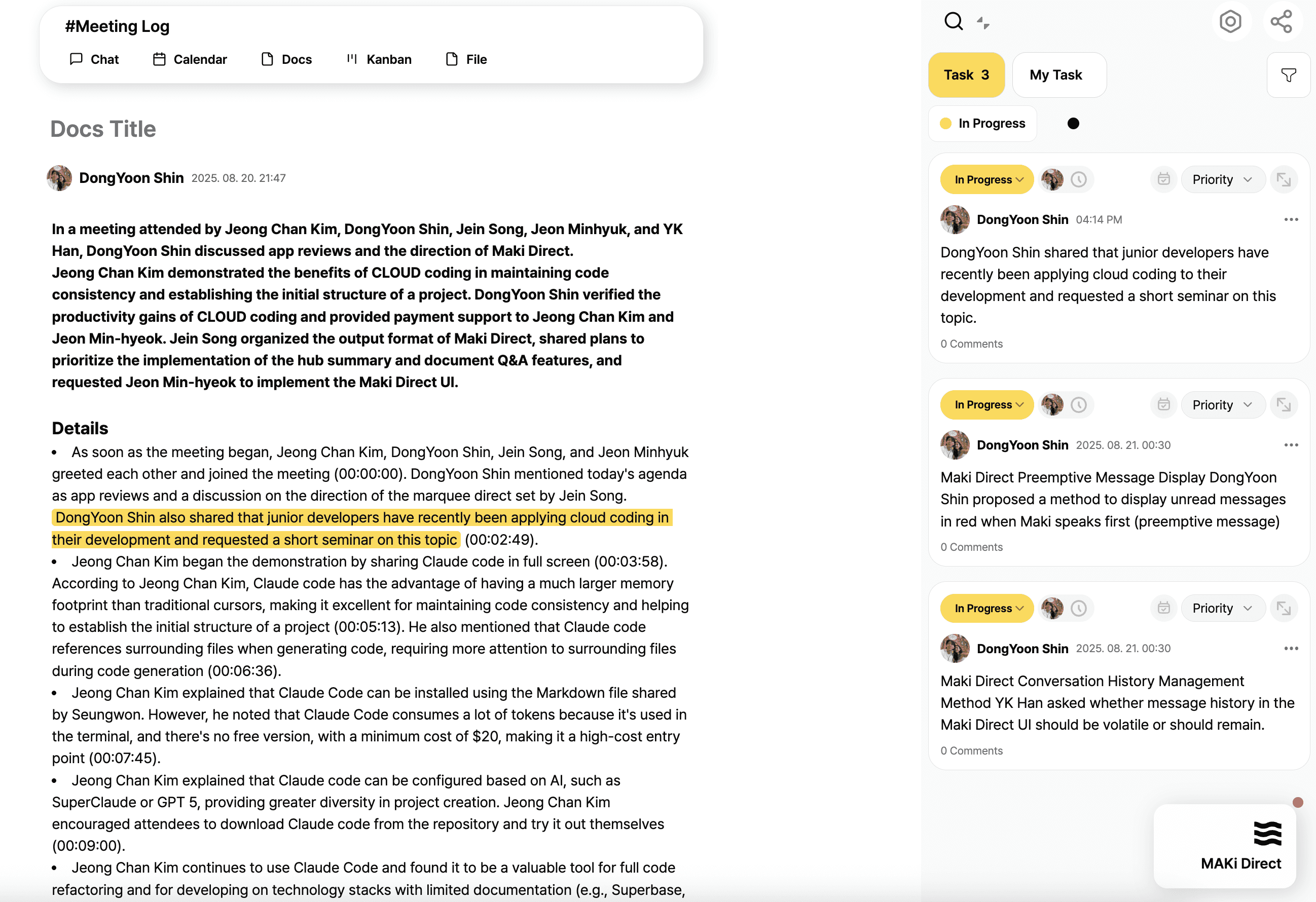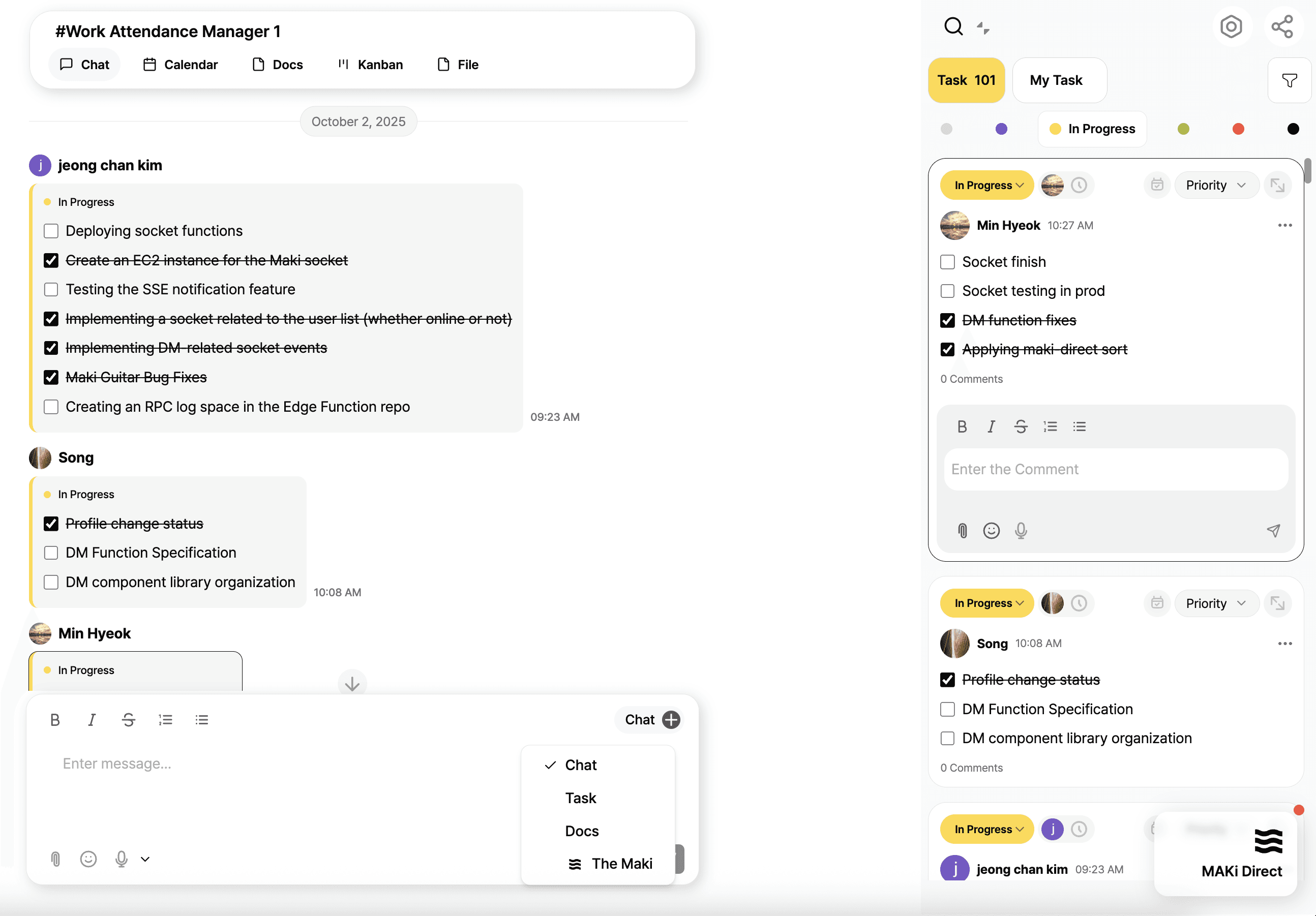 MAKi removes that gap: the chat is the workspace. It’s the hub where conversations, tasks, docs, and deadlines stay connected.