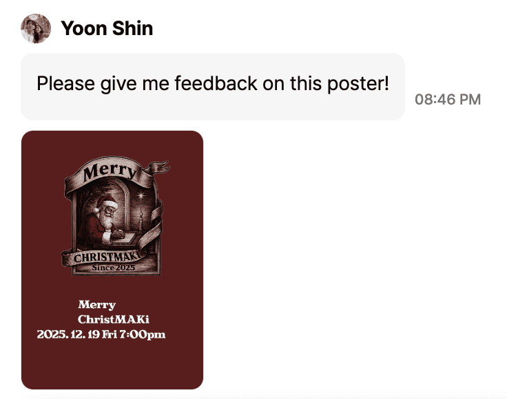 When you upload images (JPG, PNG, PDF, etc.), clicking the image opens MAKi’s specialized feedback board for precise visual review.