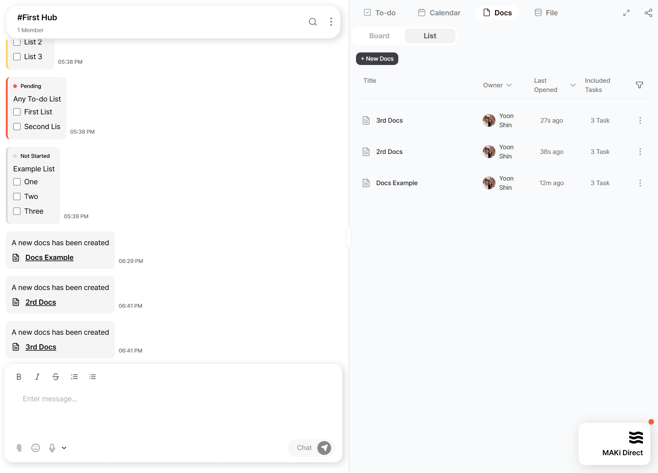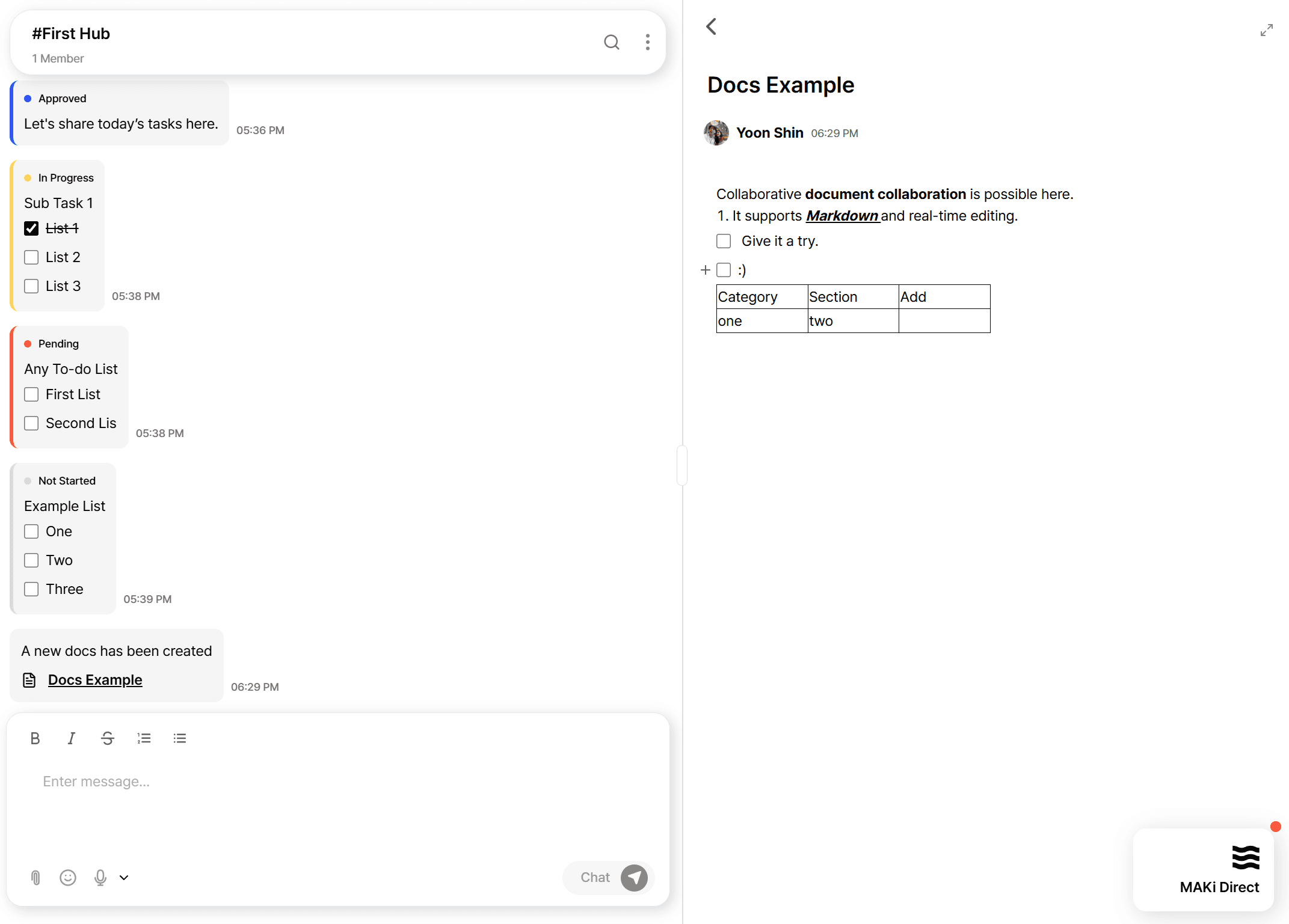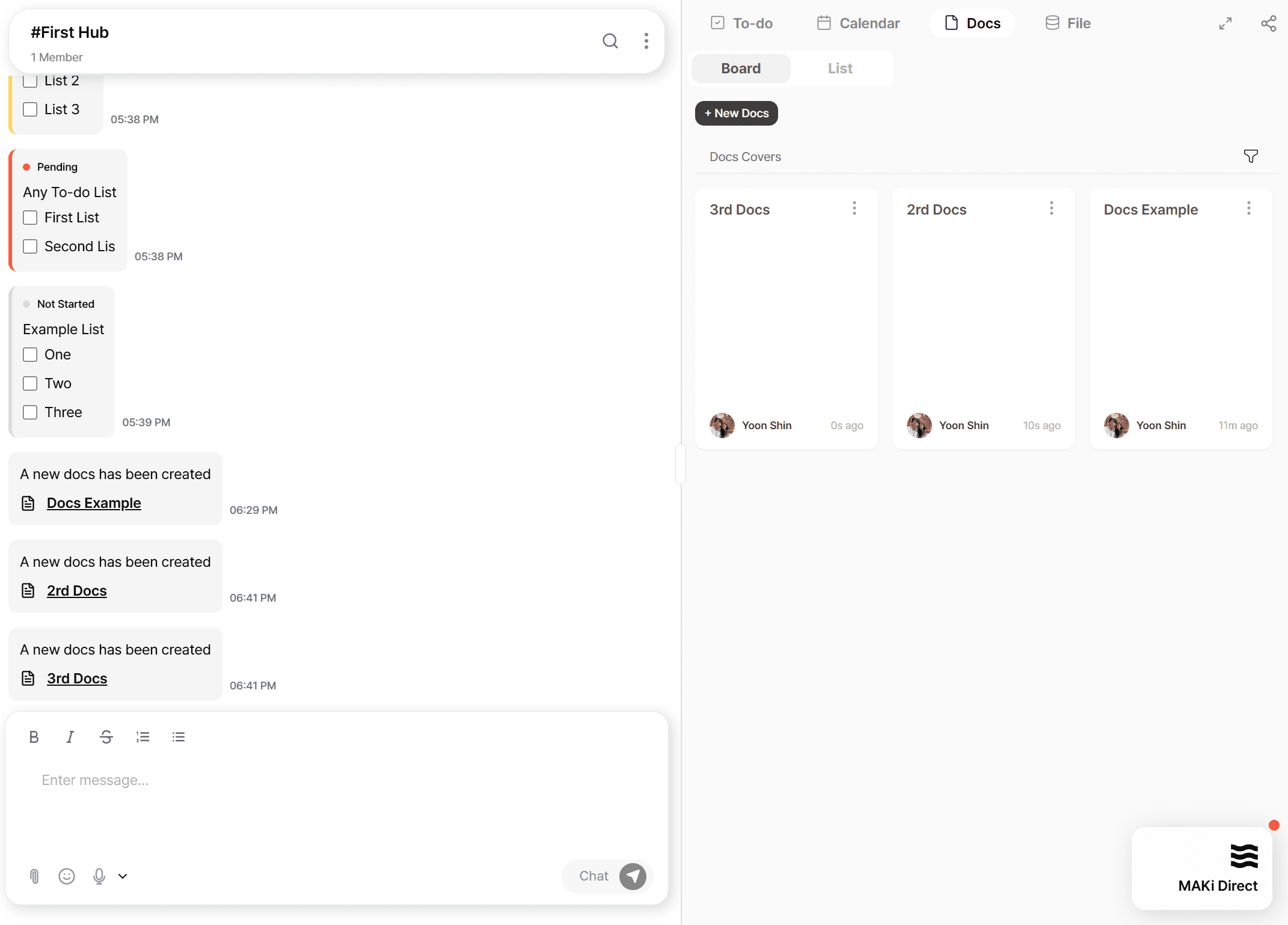 Docs in MAKi are designed for fast documentation and real-time collaboration.