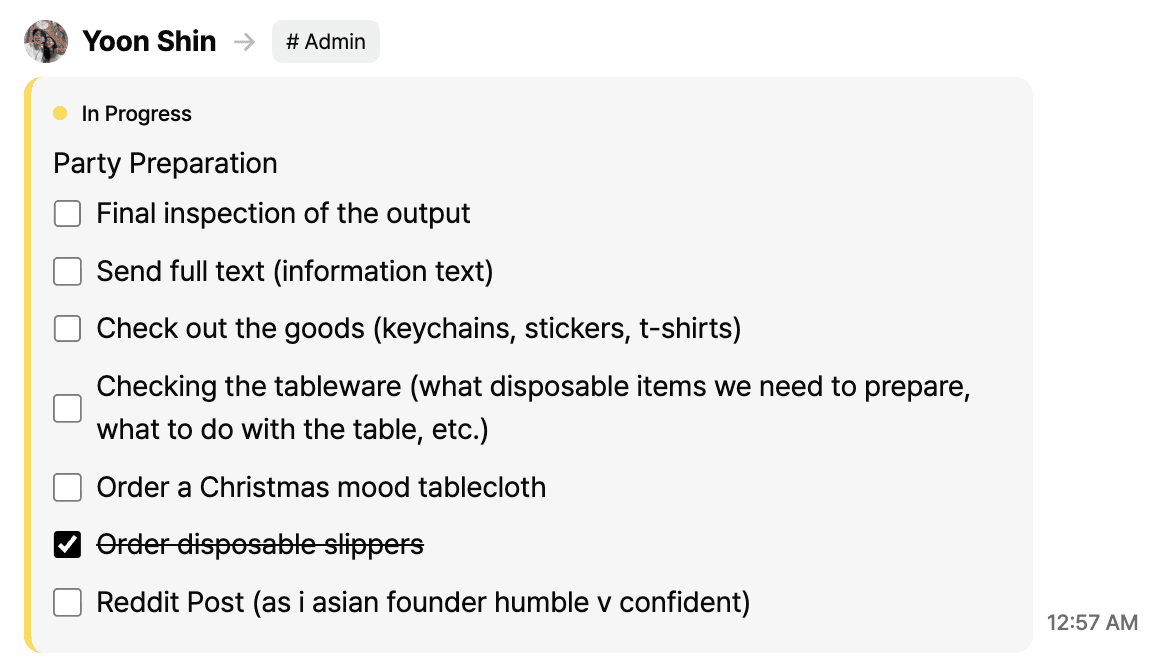 “Let's share today’s tasks here.”
